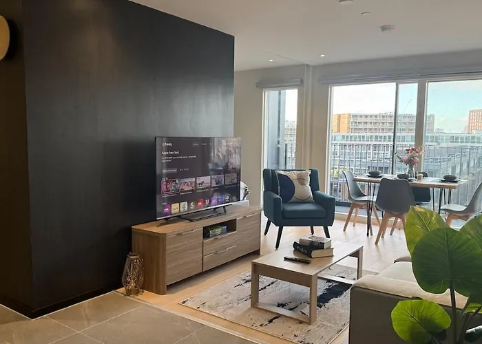 Das 1000 m² große Luxury 2 Bed Manchester Deansgate Apartment befindet sich im Stadtviertel Castlefield, 2 km weit weg von der Whitworth Art Gallery. Die Gäste können den WLAN sowohl für geschäftliche als auch für private Zwecke nutzen.